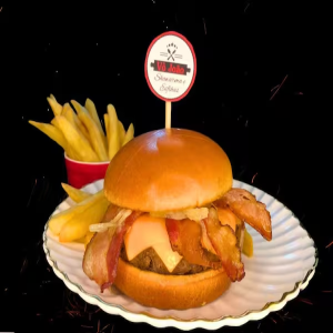 Pão brioche, hambúrguer bovino 150g, queijo cheddar, bacon fatiado, anel de cebola, barbecue e molho especial.